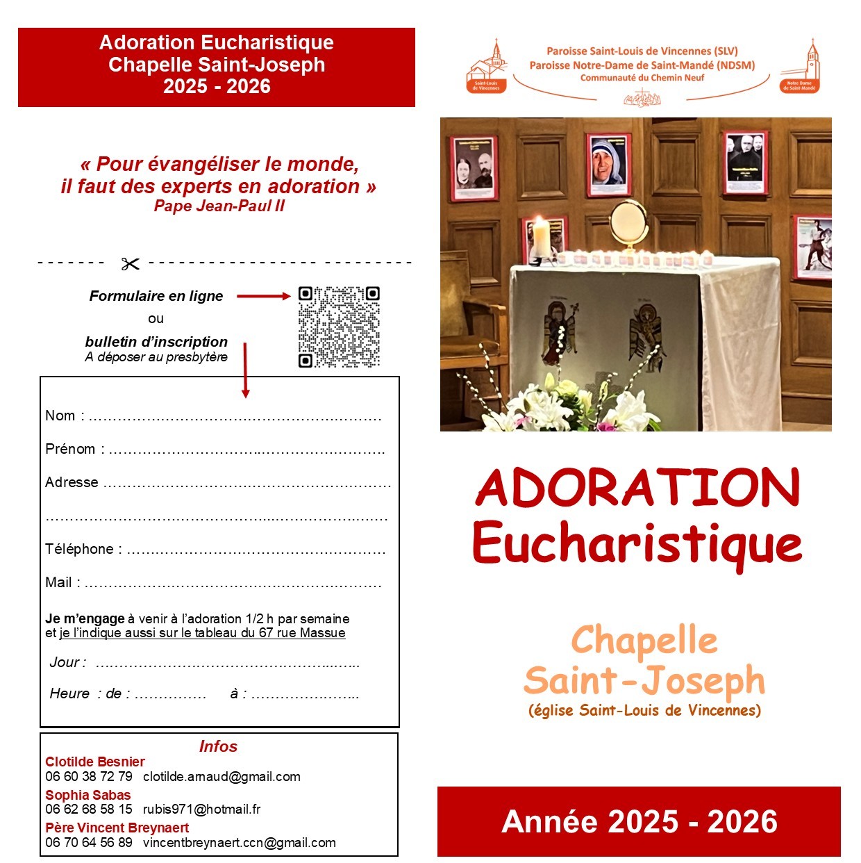 ADORATION EUCHARISTIQUE PERMANENTE à SAINT-LOUIS (chapelle Saint-Joseph) : INSCRIVEZ-VOUS !